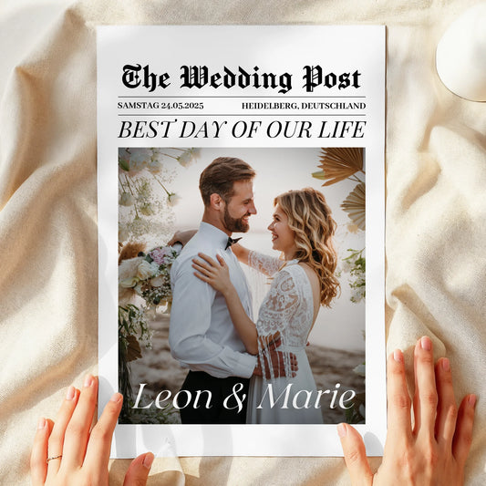 Personalisiertes Poster "The Wedding Post" - Hochzeitsposter im Zeitungsdesign - Hochzeitsgeschenk